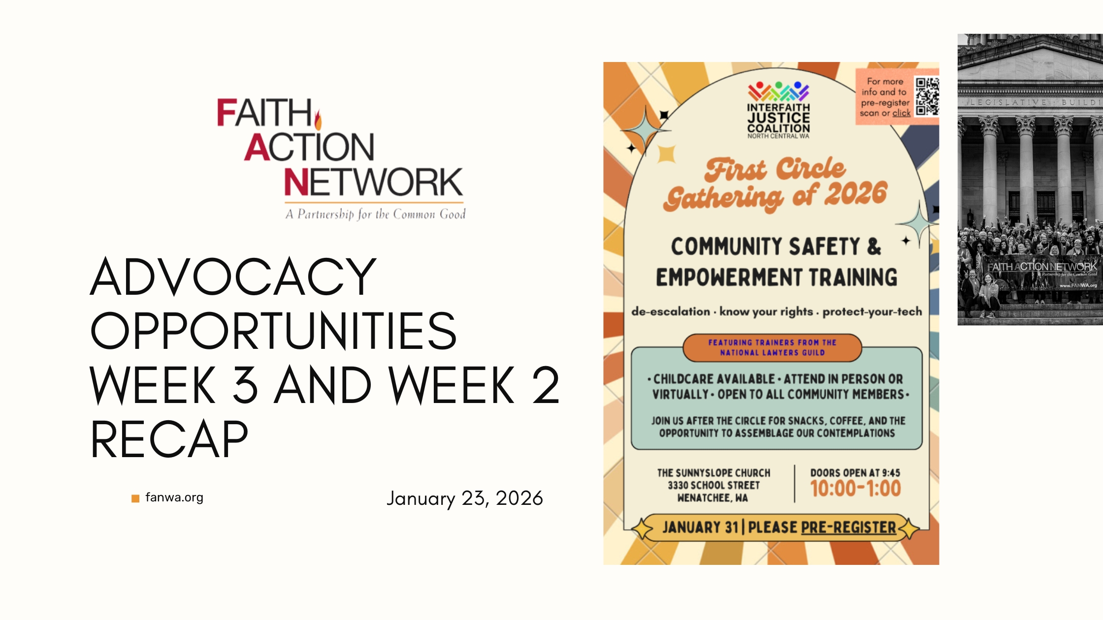 Faith Action Network is a statewide, multifaith partnership striving for just, compassionate, and sustainable communities through courageous advocacy and public action.